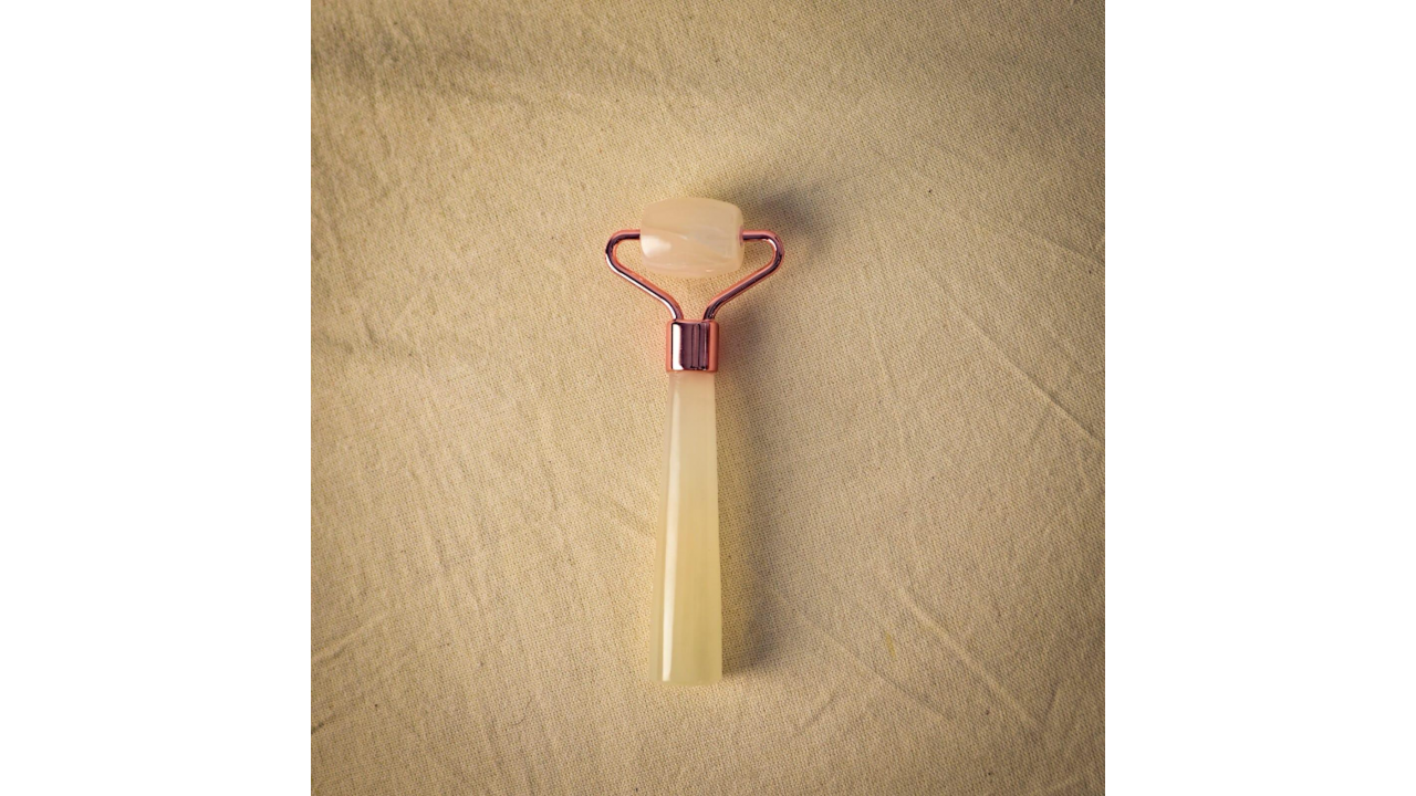 Herramienta de piedra Ónix Blanco para realizar masajes faciales.
